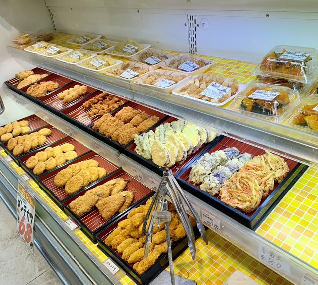 マルフクではたくさんの揚げ物や天ぷらや煮物、
